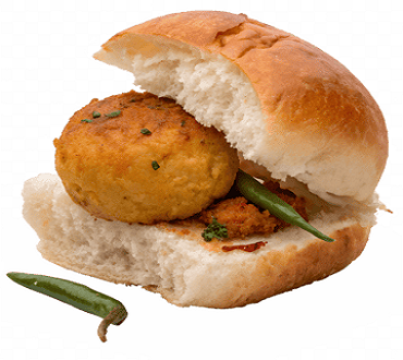 Vada Pav is a popular Mumbai street food made with a spicy potato fritter tucked inside a soft pav bun.