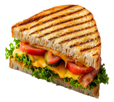 Fresh veggies layered with creamy mayo in soft toasted bread.