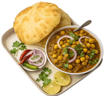 Chole Kulche is a famous North Indian street food, known for its spicy, tangy chickpea curry served with soft, fluffy kulchas.